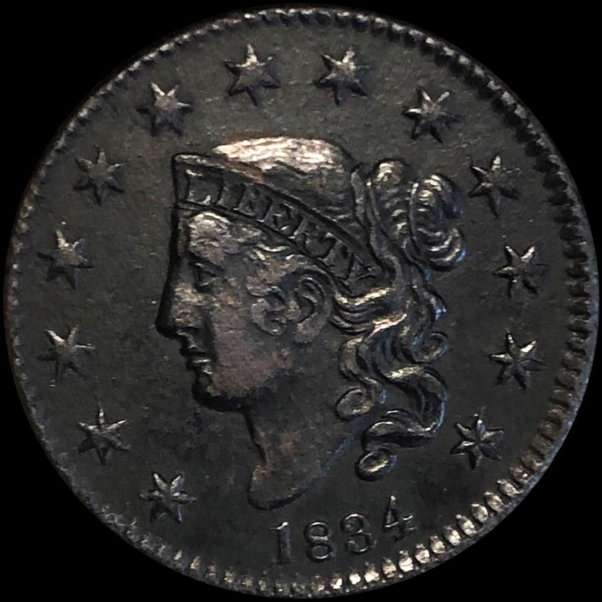 1834 Coronet Head Large Cent ABOUT UNCIRCULATED