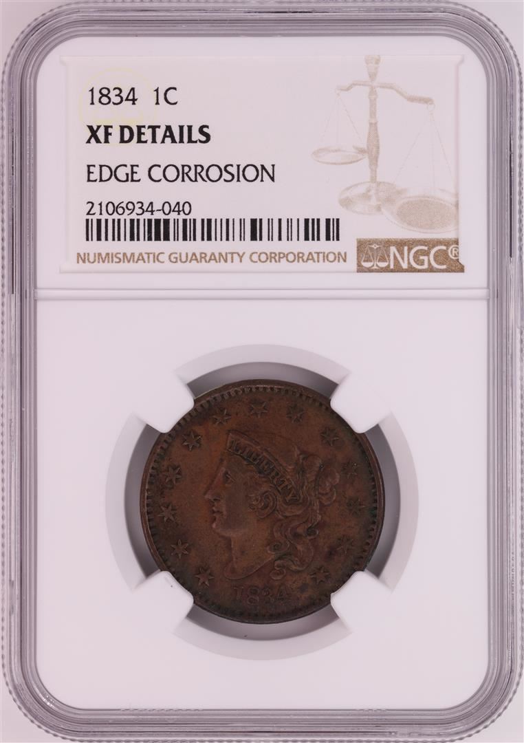 One 1834 Coronet Head Large Cent Coin NGC XF Details. NGC Certified.