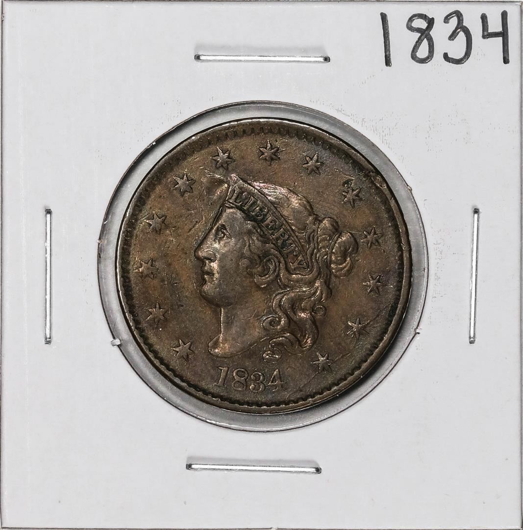 One 1834 Coronet Head Large Cent Coin.