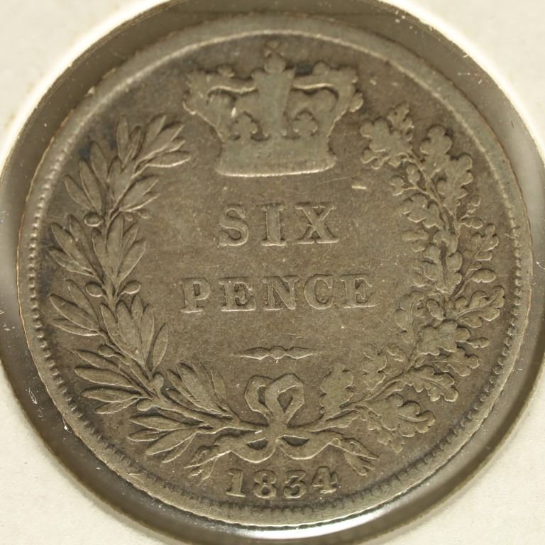 1834 GREAT BRITAIN SILVER 6 PENCE .0841 OZ. ASW