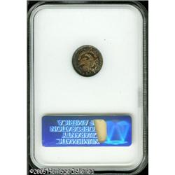 <B>1834 H10C MS63 NGC.</B></I> V-1, LM-2, R.1. On the obverse the 3 and 4 in the date are tilted left, but the reverse tells the tale between this V-1 and its R.6 cousin, the V-3. On the reverse UNITE is rotated counterclockwise, the pale of gule 3 extends to crossbar 2, and the upright of the F protrudes through the bottom of that letter. Well struck, this vibrantly lustrous example boasts deep, eye-pleasing coloration, as each side is blanketed in colors that include, primarily, electric-green, purple-rose, and amber. Distraction-free on both obverse and reverse. Lot:6111