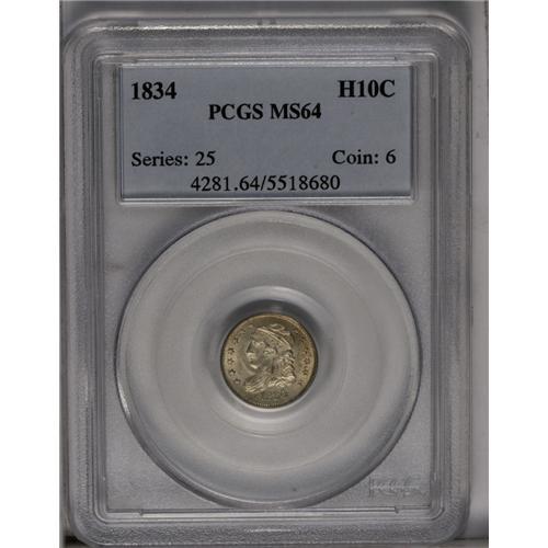 1834 H10C MS64 PCGS. V-1, LM-2, R.1. This shimmering n