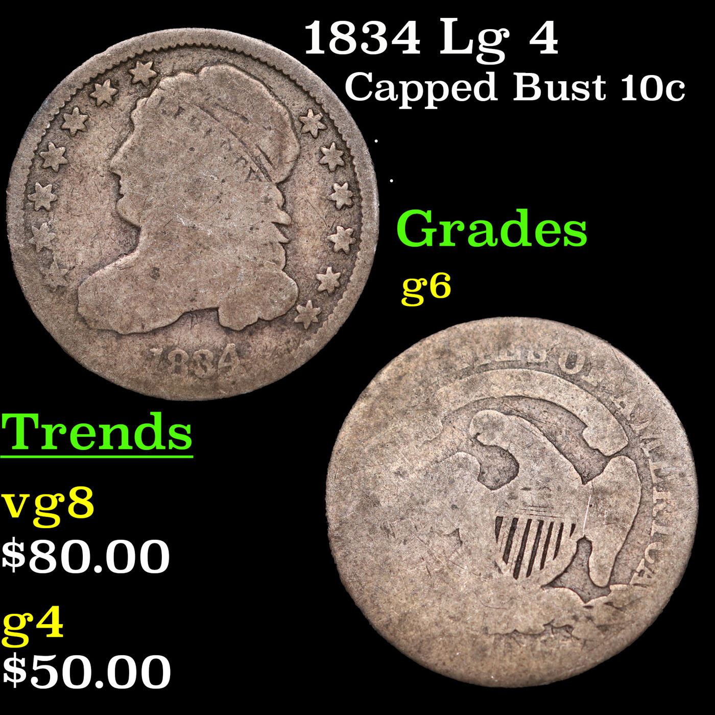 1834 Lg 4 Capped Bust Dime 10c Grades g+.