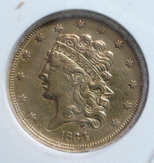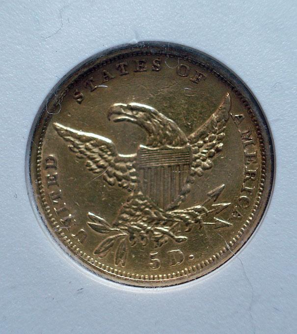 1834 PL4 $5 GOLD solid XF cleaned as most are