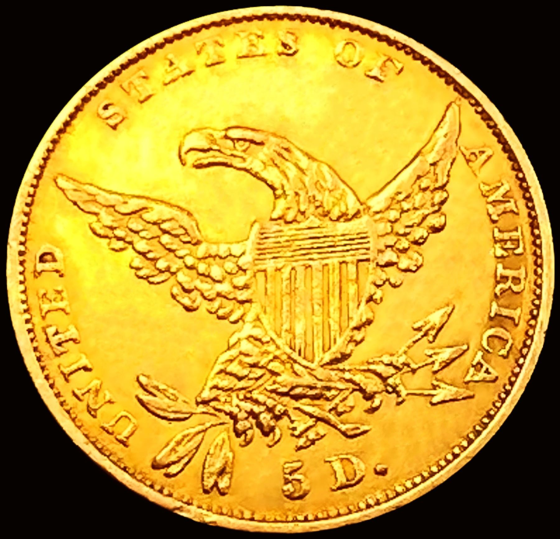 1834 Plain 4 $5 Gold Half Eagle CHOICE AU