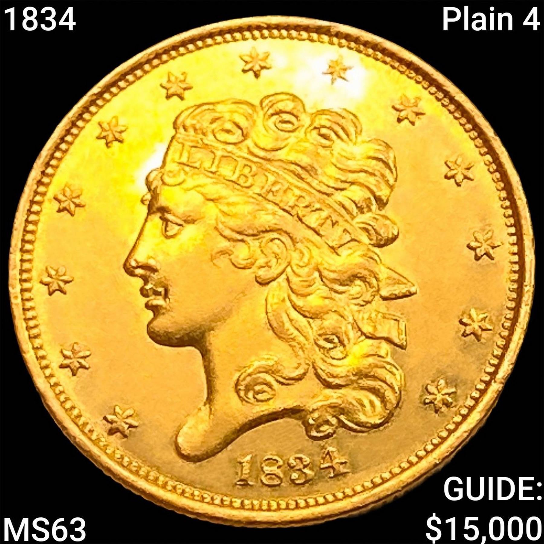 1834 Plain 4 $5 Gold Half Eagle CHOICE BU