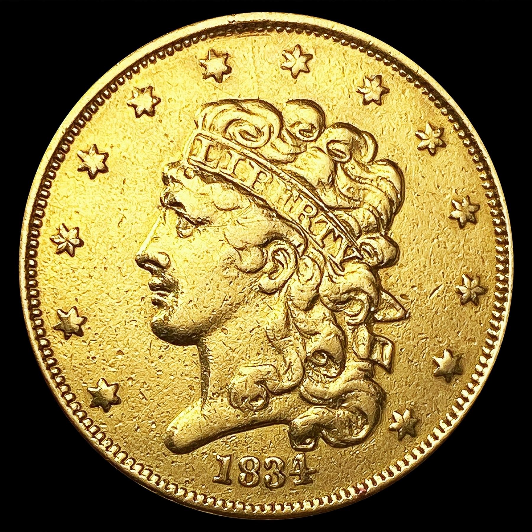 1834 Plain 4 $5 Gold Half Eagle LIGHTLY CIRCULATED