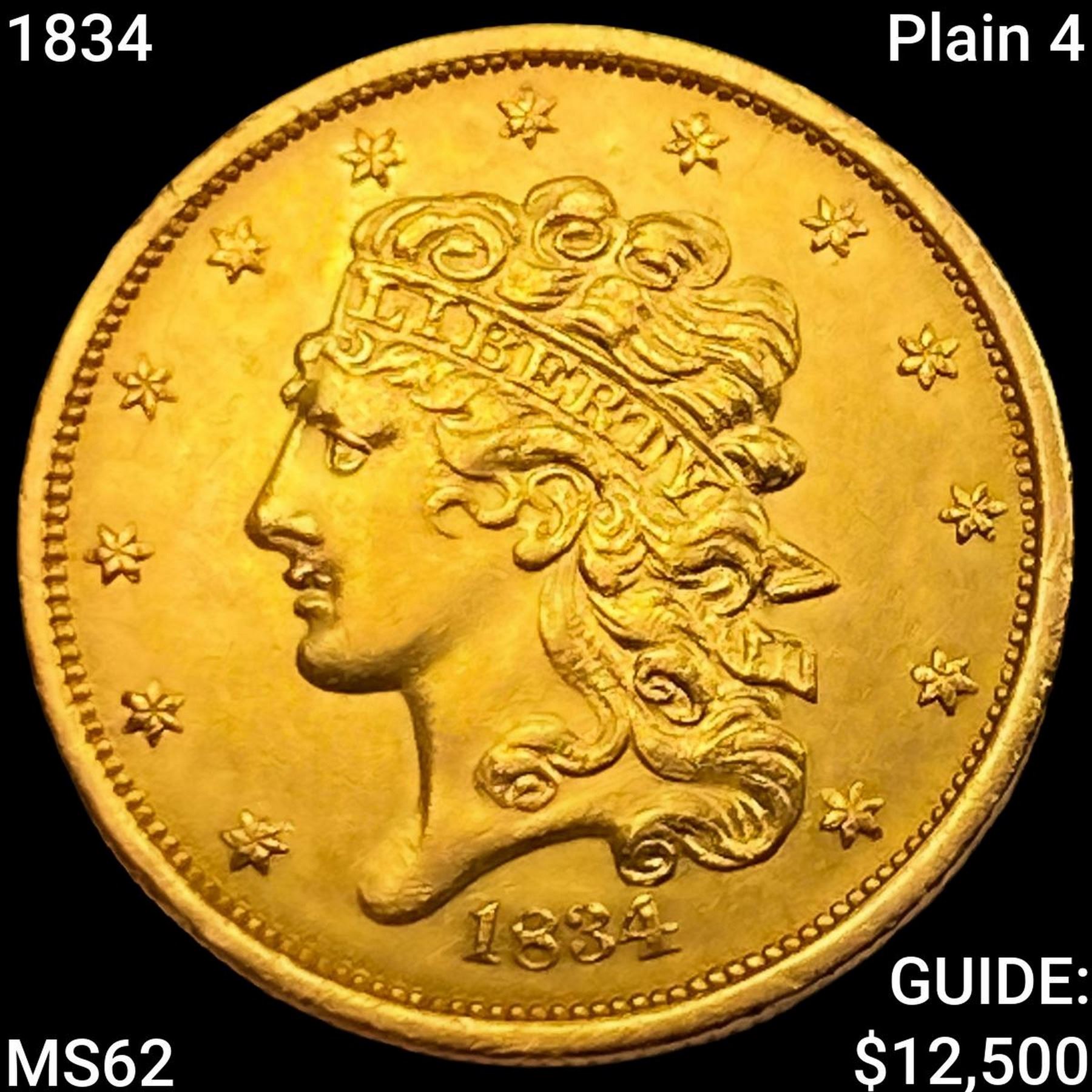 1834 Plain 4 $5 Gold Half Eagle UNCIRCULATED