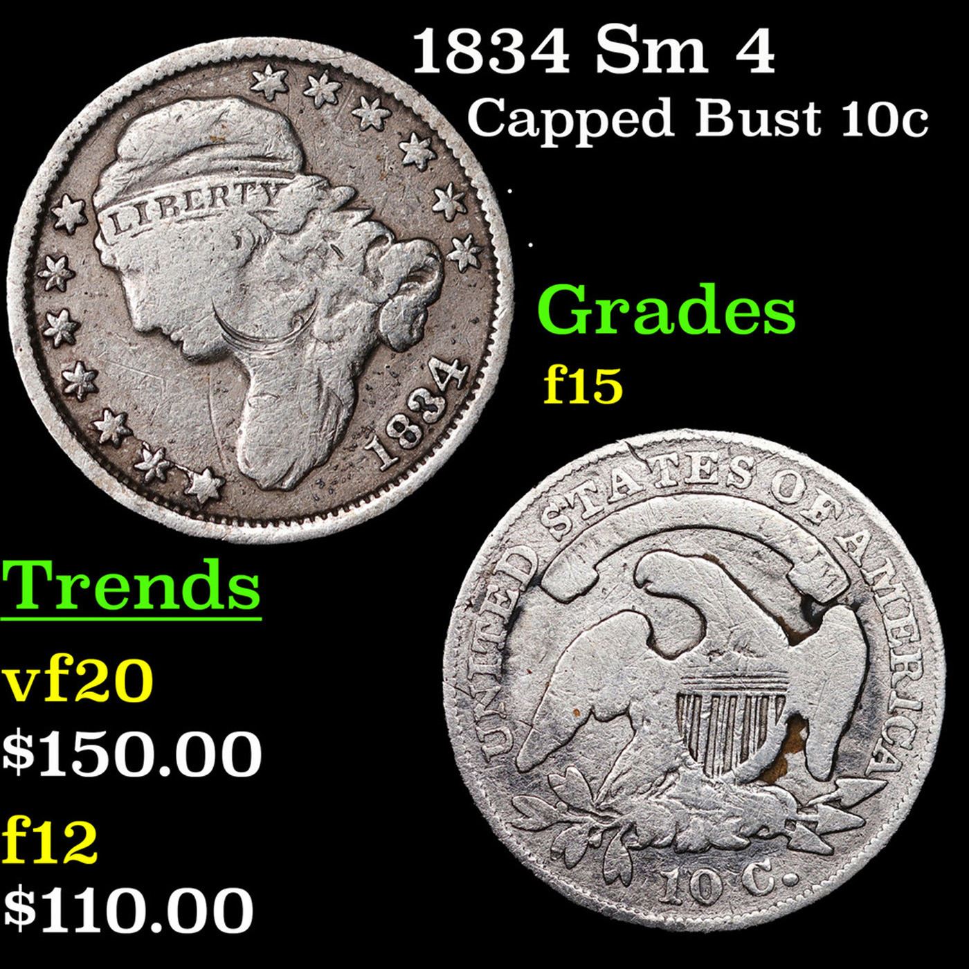 1834 Sm 4 Capped Bust Dime 10c Grades f+.