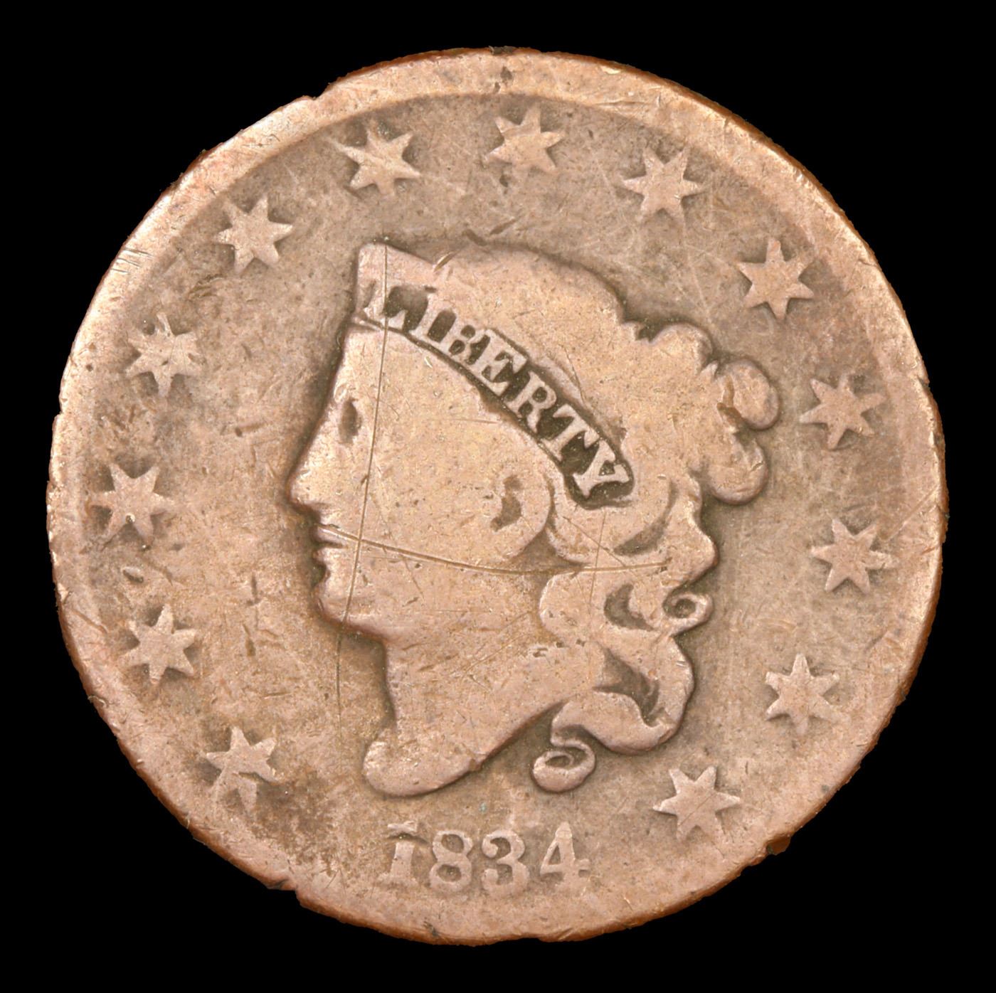 1834 Small 8 Coronet Head Large Cent 1c Grades f, fine.