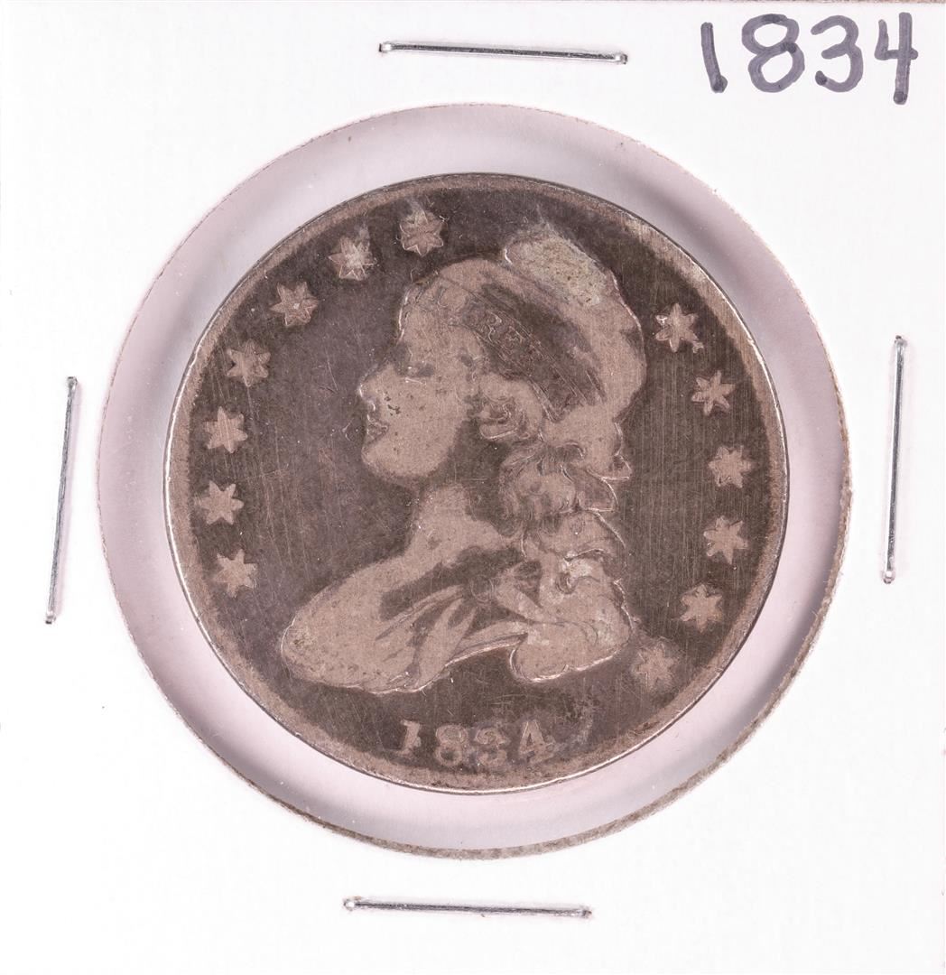 One 1834 Small Date Capped Bust Half Dollar Coin.
