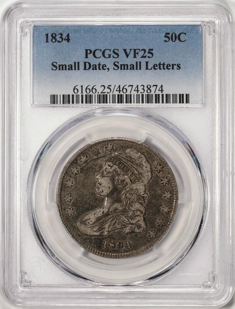 1834 Small Date, Small Letters Capped Bust Half Dollar Coin PCGS VF25