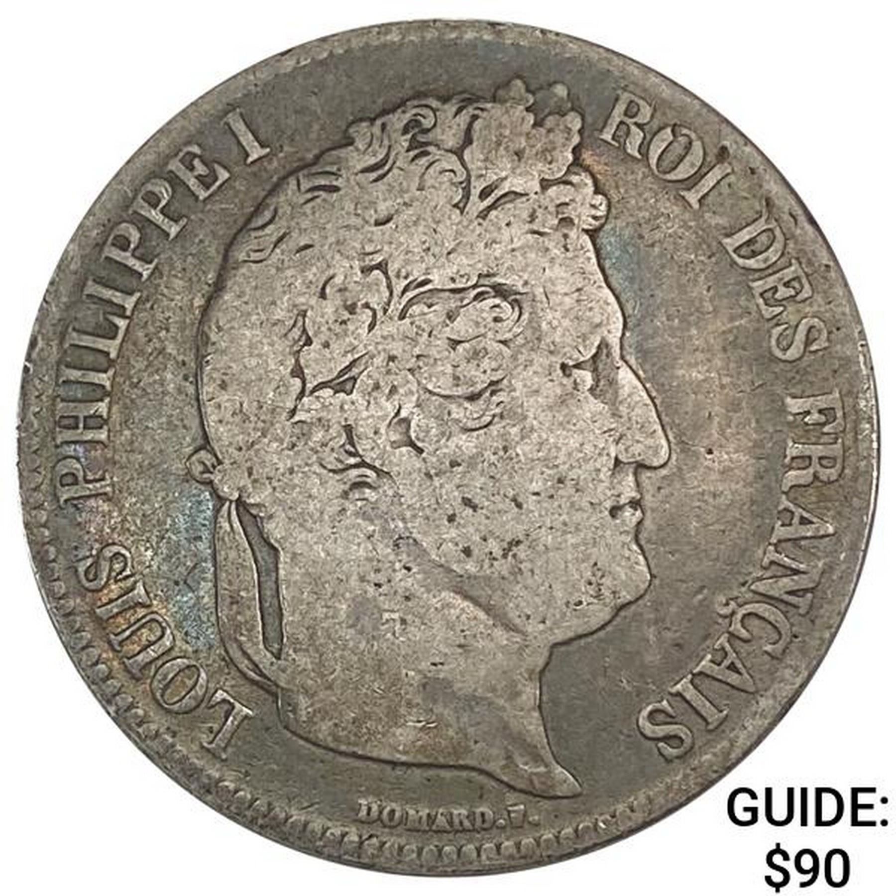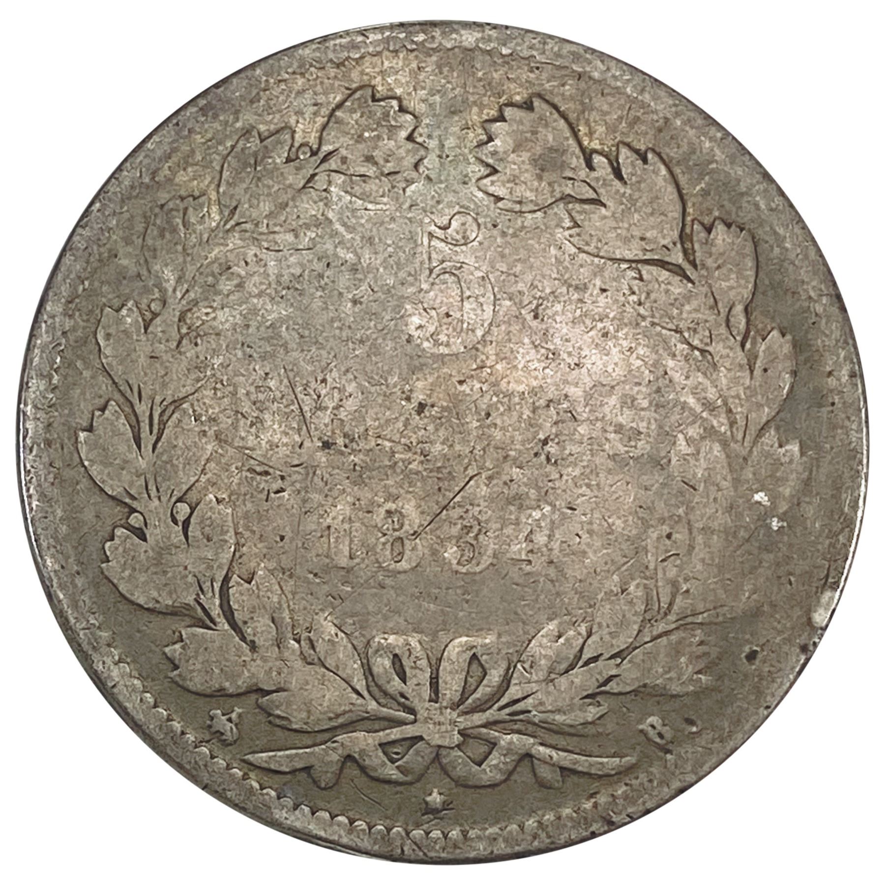 1834B France Silver 5 Francs ABOUT UNCIRCULATED