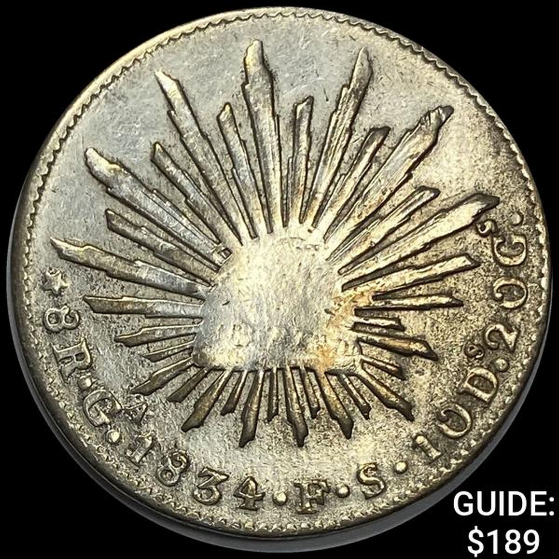 1834GA FS Mexico Silver 8 Reales Cap&Rays NEARLY UNCIRCULATED