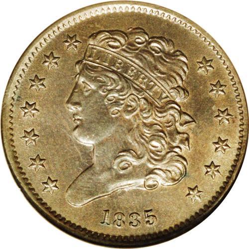 1835 1/2 C C-1, B-1, R.1 MS60. Die State 2. Tall, recu 1835[1/2 C] C-1, B-1, R.1. Die State 2. MS63
