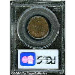 <B>1835<1/2 C> MS64 Brown PCGS.</B></I> B-1, C-1, R-1. Manley Die State 2.0. A well struck medium brown Choice Half Cent with splendidly preserved fields and a few minor ticks on the portrait. Prominently die clashed, as produced.<BR><I>From The Rafael Romero Collection.</B></I> <BR><BR><B>Important notice:</B> Heritage usually auctions material at the rate of 200-250 lots per hour. On some occasions eBay Live bid software or the Internet may not be able to keep up with the pace of the auction. We recommend placing a realistic absentee bid now as insurance to avoid disappointment. Occasionally the auctioneer may eliminate or reject an eBay Live bid, and the auctioneer may also reopen a lot after the close of the eBay live bidding (usually because we missed an audience bid), and may reject your bid even if it shows you as the winning bidder. By bidding via eBay Live, you agree that Heritage may award the lot to another bidder at its sole discretion under the circumstances described above or any other reasonable circumstances. Since eBay bids are not shown to us until we open the lot on the floor, we treat those bids just like floor bids. In most cases the floor responds before the eBay bid is presented to us, due to Internet lag time, so for consistency we have made it a policy that floor bids are always considered first over tie eBay live bids. Also please note that all Heritage lots purchased through eBay Live carry a 20% Buyer's Premium. Please make sure you read the Terms and Conditions before you bid.