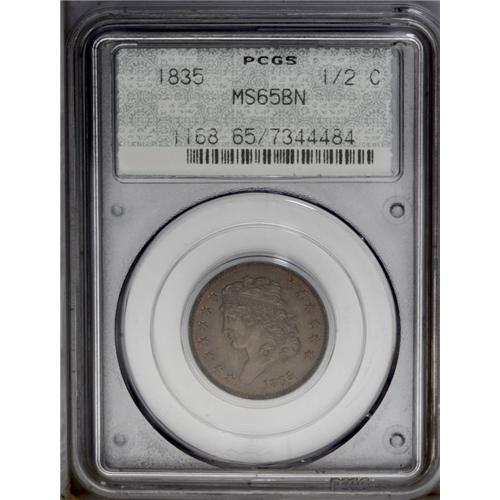1835 1/2 C MS65 Brown PCGS. C-1, B-1, R.1. An intricat