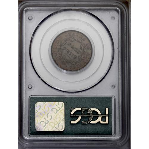 <B>1835<1/2 C> MS65 Brown PCGS.</B></I> C-1, B-1, R.1. An intricately struck and satiny example that displays prominent clash marks in front of the profile. Toned chocolate-brown with an occasional glimpse of red and a few toning flecks near the letters in HALF CENT. Certified in an old doily label holder. EAC 60. <BR><BR><B>Important notice:</B> Heritage usually auctions material at the rate of 200-250 lots per hour. On some occasions eBay Live bid software or the Internet may not be able to keep up with the pace of the auction. We recommend placing a realistic absentee bid now as insurance to avoid disappointment. Occasionally the auctioneer may eliminate or reject an eBay Live bid, and the auctioneer may also reopen a lot after the close of the eBay live bidding (usually because we missed an audience bid), and may reject your bid even if it shows you as the winning bidder. By bidding via eBay Live, you agree that Heritage may award the lot to another bidder at its sole discretion under the circumstances described above or any other reasonable circumstances. Since eBay bids are not shown to us until we open the lot on the floor, we treat those bids just like floor bids. In most cases the floor responds before the eBay bid is presented to us, due to Internet lag time, so for consistency we have made it a policy that floor bids are always considered first over tie eBay live bids. Also please note that all Heritage lots purchased through eBay Live carry a 20% Buyer's Premium. Please make sure you read the Terms and Conditions before you bid. This lot is being auctioned in conjunction with a live floor auction by Heritage Galleries & Auctioneers. All final auction and invoice information will be supplied by Heritage Galleries & Auctioneers, and all other information should be considered preliminary. Lot:225 <BR><BR><B>Winning Notification and Billing:</B> After the FINAL session in this auction is complete, Heritage will send e-mail and snail mail invoices. This process normally takes several days. All final auction and invoice information will be supplied by Heritage Galleries & Auctioneers, and all other information should be considered preliminary. <BR><BR>This auction will be conducted on a live auction floor and over the Internet through eBay Live. If you choose to place an absentee bid, please take a moment to <font color='#0000ff'><u><a href='http://pages.ebay.com/liveauctions/help/before/laabsentee.html'>learn how eBay Live absentee bidding works</a></u></font><font color='#000000'>