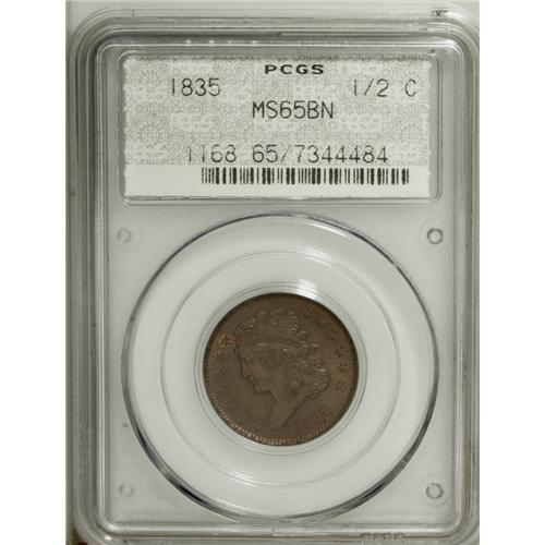 1835 1/2 C MS65 Brown PCGS. C-1, B-1, R.1. An intricat
