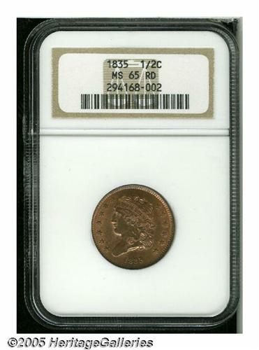 1835 1/2 C MS65 Red NGC. B-1, C-1, R.1. Of the 39