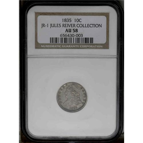 1835 10C AU58 NGC. JR-1, R.1. Warmly and attractively 1835[10C] JR-1, R.1. Reiver state a. AU58 NGC.