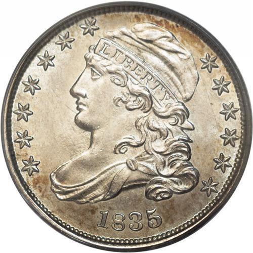 1835 10C MS63 PCGS. JR-3, R.2. A late die state with h 1835[10C] MS63 PCGS.