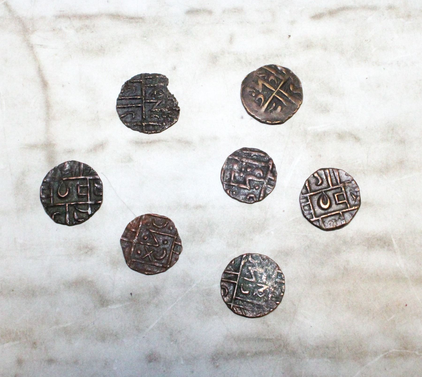 1835-1910 ANTIQUE LOT OF 7 BHUTAN 1/2 RUPEE COINS