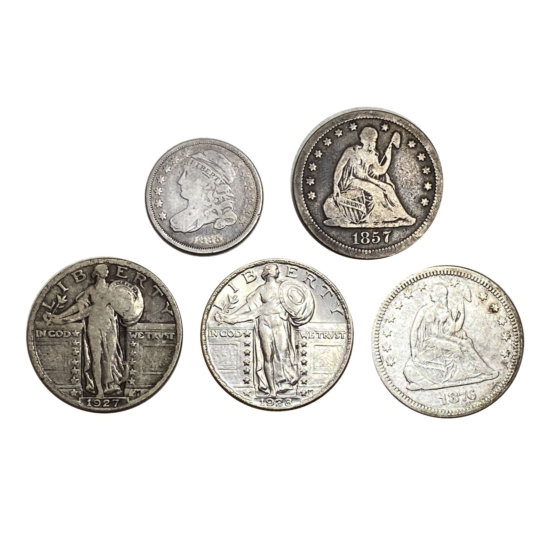 1835-1928 US Silver Type Coin[5 Coins] HIGH GRADE