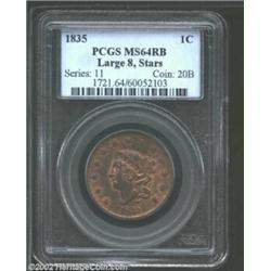 1835 1C Large 8 and Stars MS64 Red and Brown PCGS. Conditionally challenging with this being the onl