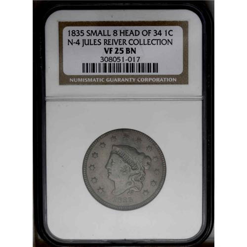 1835 1C N-4, High R.4. Small 8 and Stars. VF25 NGC. Fi 1835[1C] Small 8 and Stars. N-4, High R.4. VF