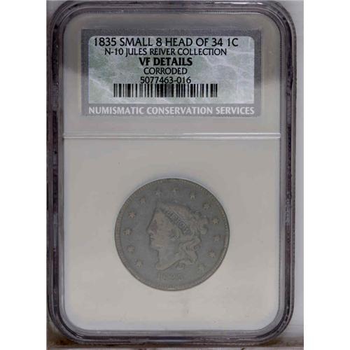 1835 1C Small 8 and Stars--Corroded--NCS. VF Details. 1835[1C] Small 8 and Stars. N-10, R.4--Corrode