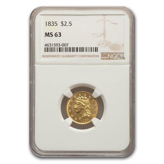 One piece 1835 $2.50 Gold Classic Head Quarter Eagle MS-63 NGC