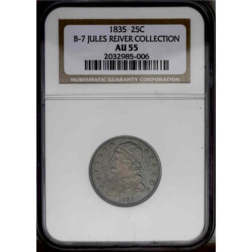 1835 25C B-7, R.2. AU55 NGC. Usual Die State. Star 7 p 1835[25C] B-7, R.2. AU55 NGC. Usual Die State