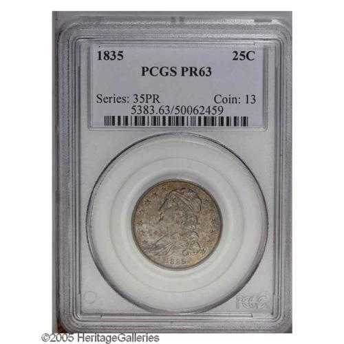1835 25C PR63 PCGS. B-7, R.2 as a business strike, Hig 1835[25C] PR63 PCGS.