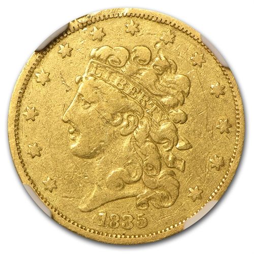 1835 $5 Gold Classic Head Half Eagle - VF Details NGC - **|**|** Year: 1835 ; Mint Mark: VF Details Cleaned ; Denomination: $5 ; MSRP: $900