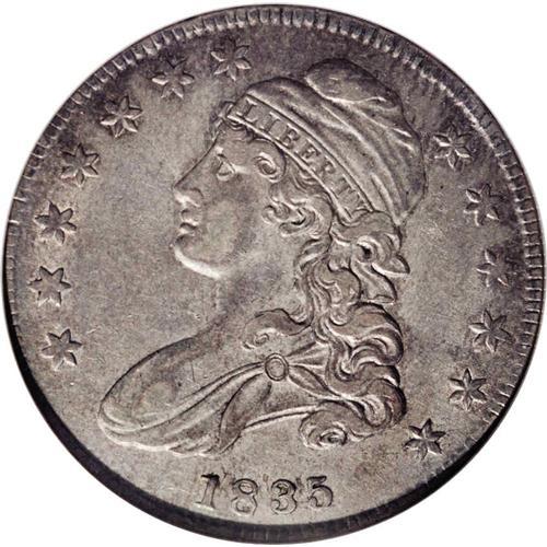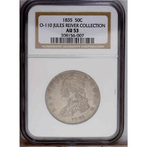 1835 50C AU53 NGC. O-110, R.2. This variety shows the 1835[50C] AU53 NGC.