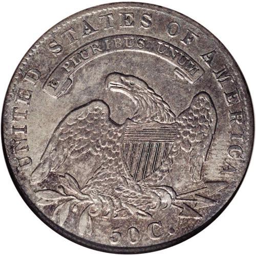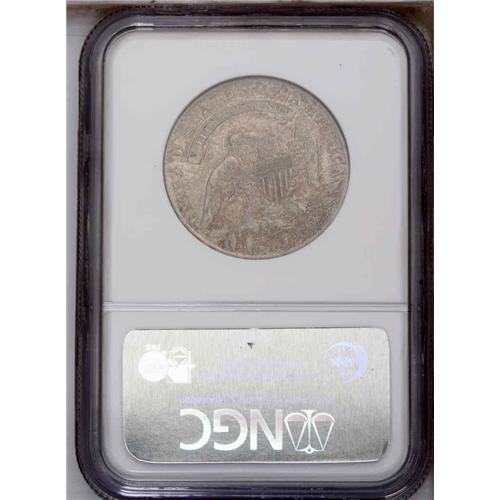 <B>1835<50C> AU53 NGC.</B></I> O-110, R.2. This variety shows the 35 in the date being closer than 183 and a shade higher than 18, a recut stand in the 5, and a spike from the left (facing) top corner of the shield. Light gray surfaces are peppered with olive-green and reddish-brown speckles. A few minor contact marks are visible on Liberty's neck and in the left (facing) obverse field.<BR><I>Ex: Les Bortner (1/4/1981).</B></I> Envelope Included.
