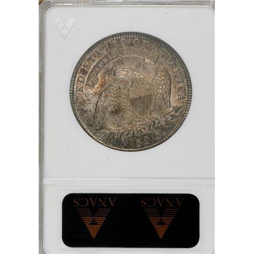 <B>1835 50C MS61 ANACS.</B></I> O-106, R.1. The 1 in the date leans right, the 5 is recut at the stand, and the first four stripes each have one line to the second crossbar. Cobalt-blue, lavender, and golden-brown patina rests on softly lustrous surfaces that exhibit sharply struck devices. A few light obverse handling marks are noted.<BR><BR><b>Shipping:</b> Coins & Currency (<a target="_blank" href="http://www.heritageauctions.com/common/shipping.php">view shipping information</a>)