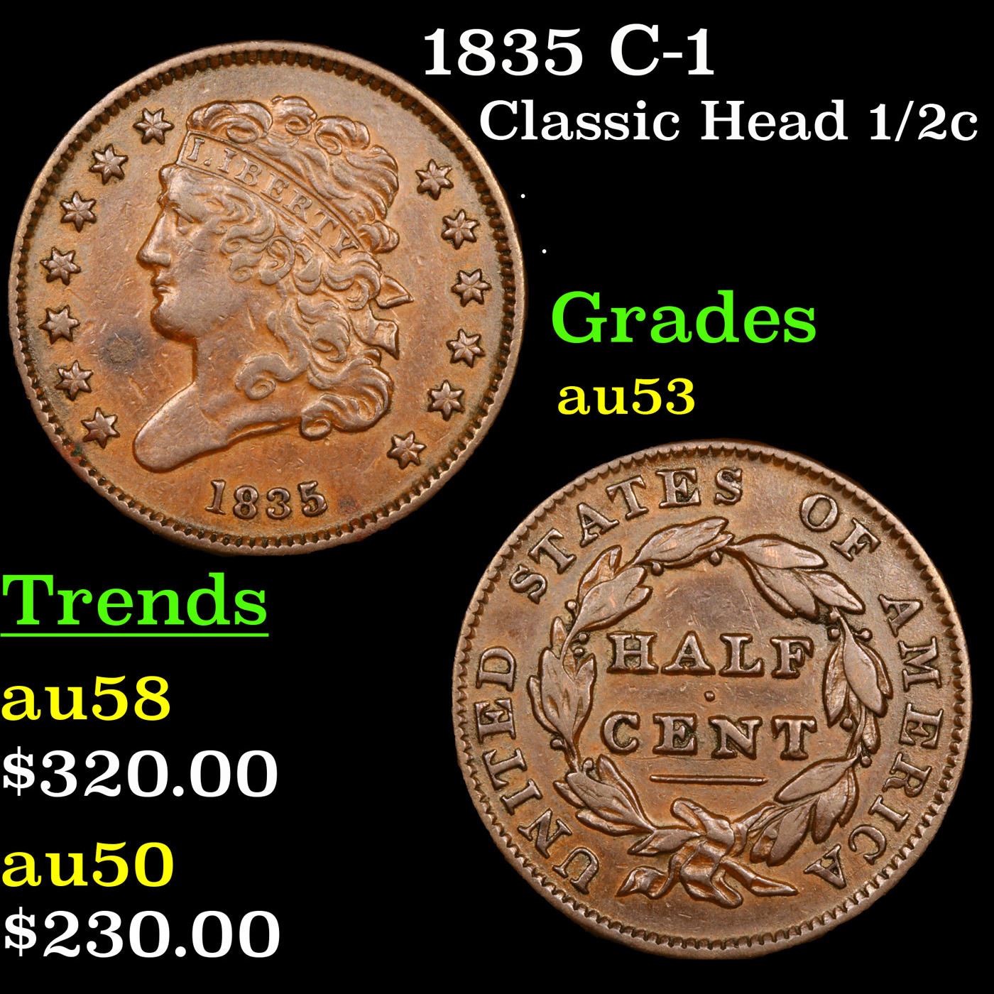1835 C-1 Classic Head half cent 1/2c Grades Select AU.