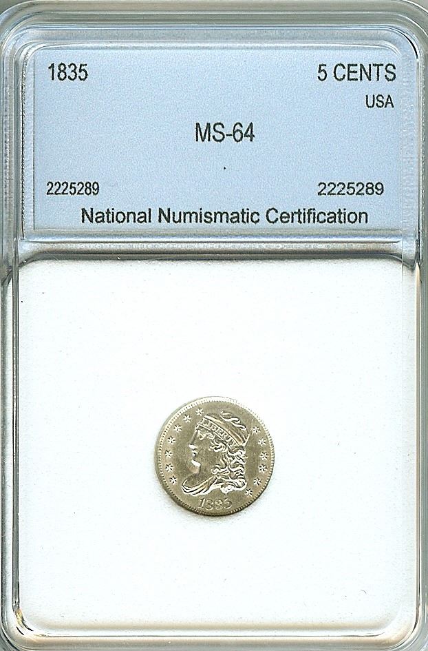 1835 CAPPED BUST SILVER 5 CENTS NNC MS-64