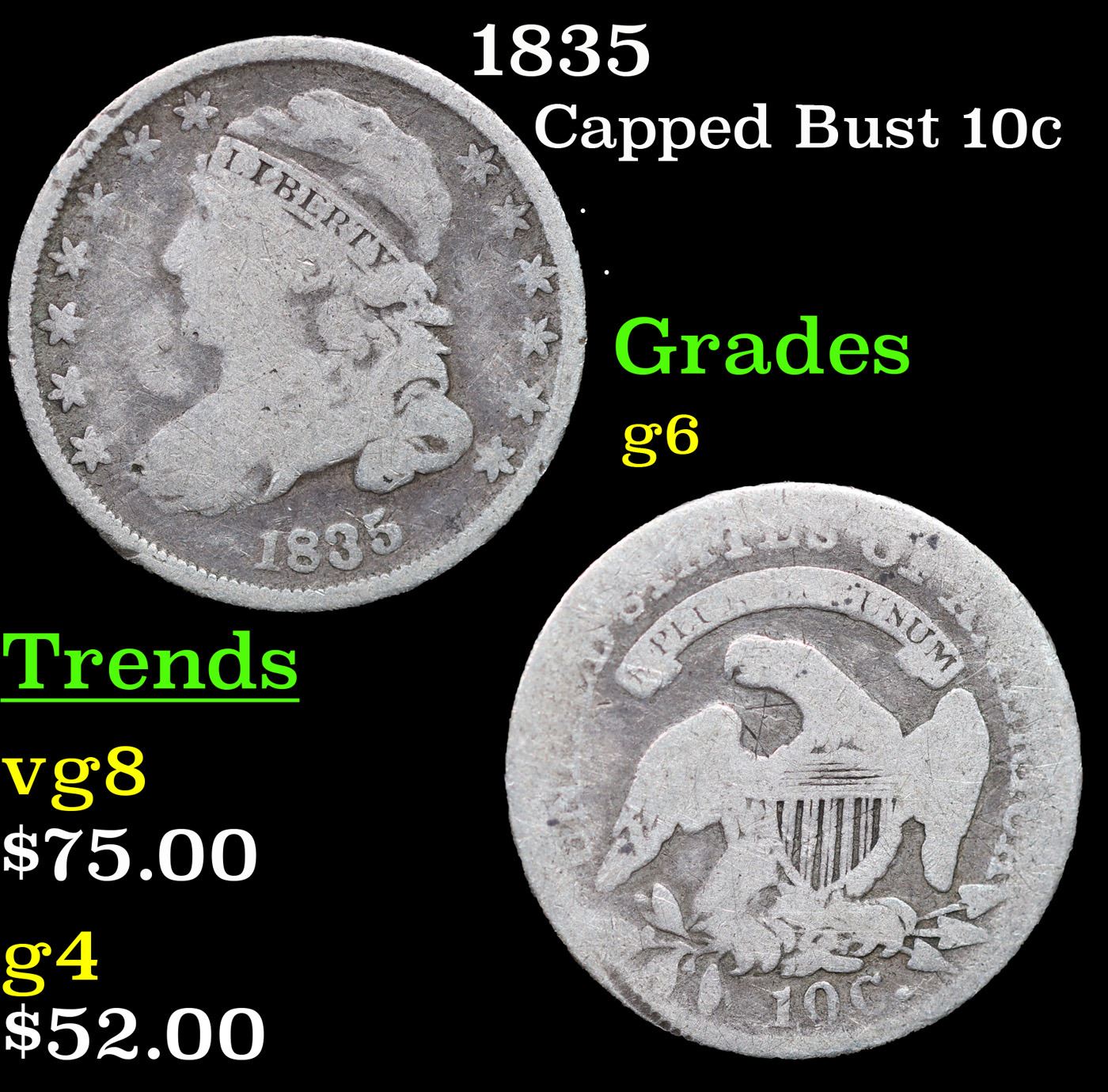 1835 Capped Bust Dime 10c Grades g+.