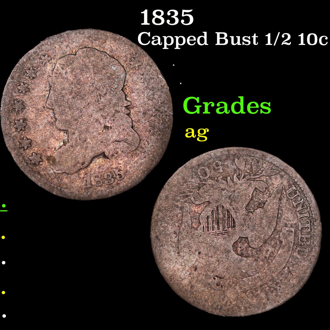1835 Capped Bust Half Dime 1/2 10c Grades ag.