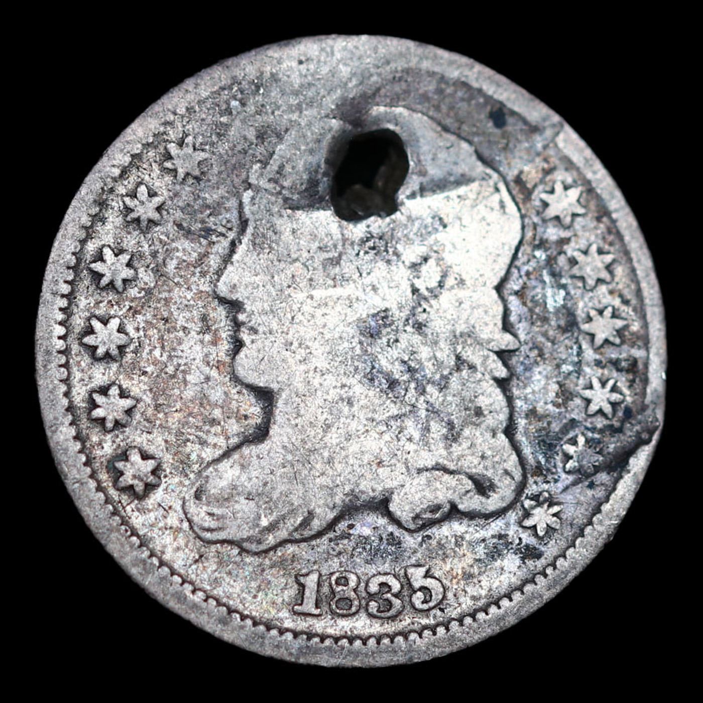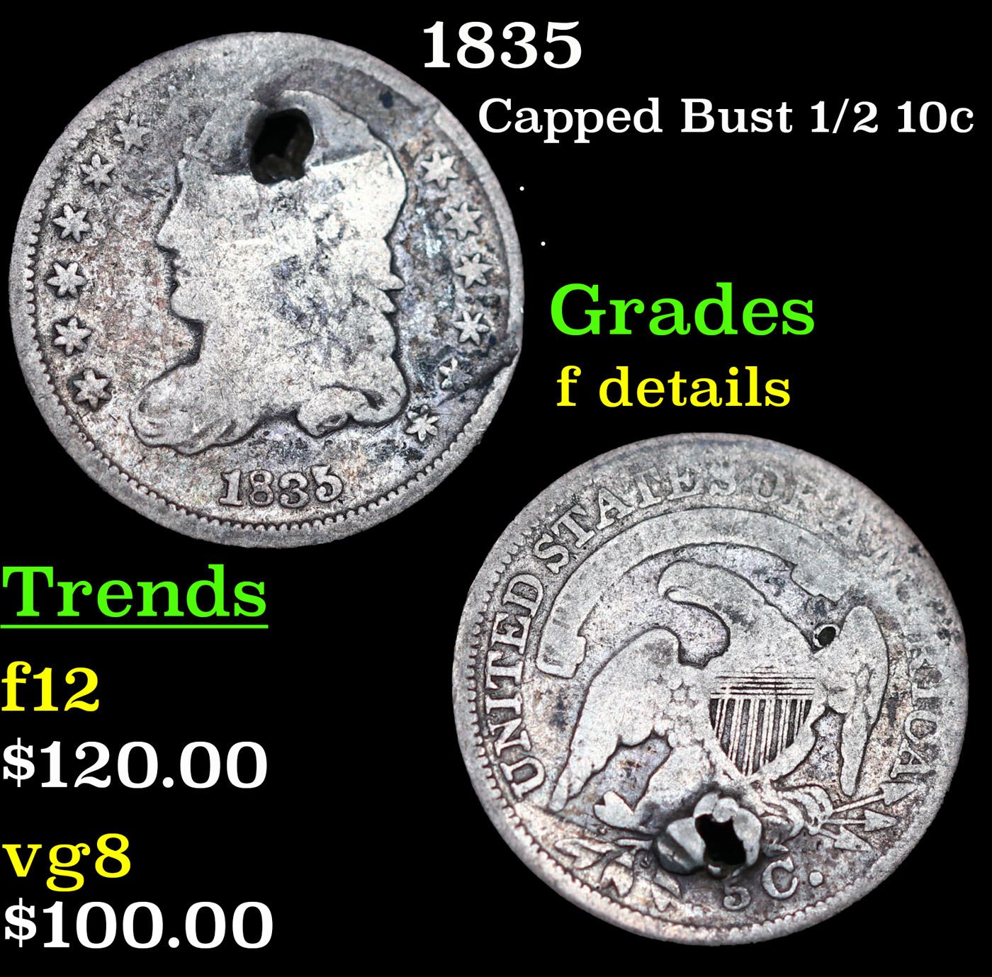 1835 Capped Bust Half Dime 1/2 10c Grades f details.