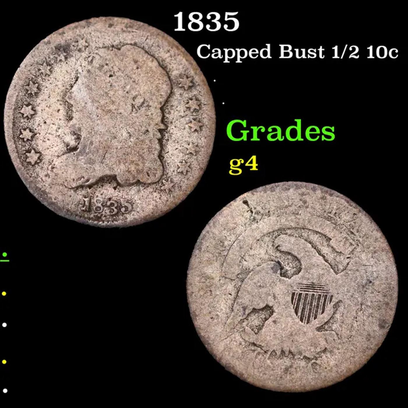 1835 Capped Bust Half Dime 1/2 10c Grades g, good.