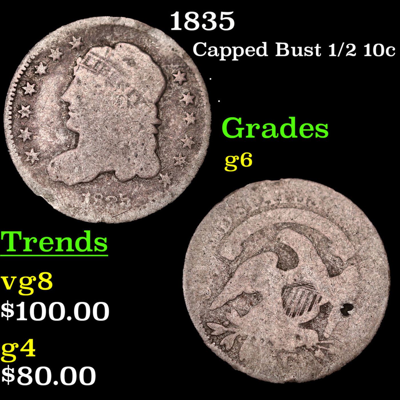 1835 Capped Bust Half Dime 1/2 10c Grades g+.