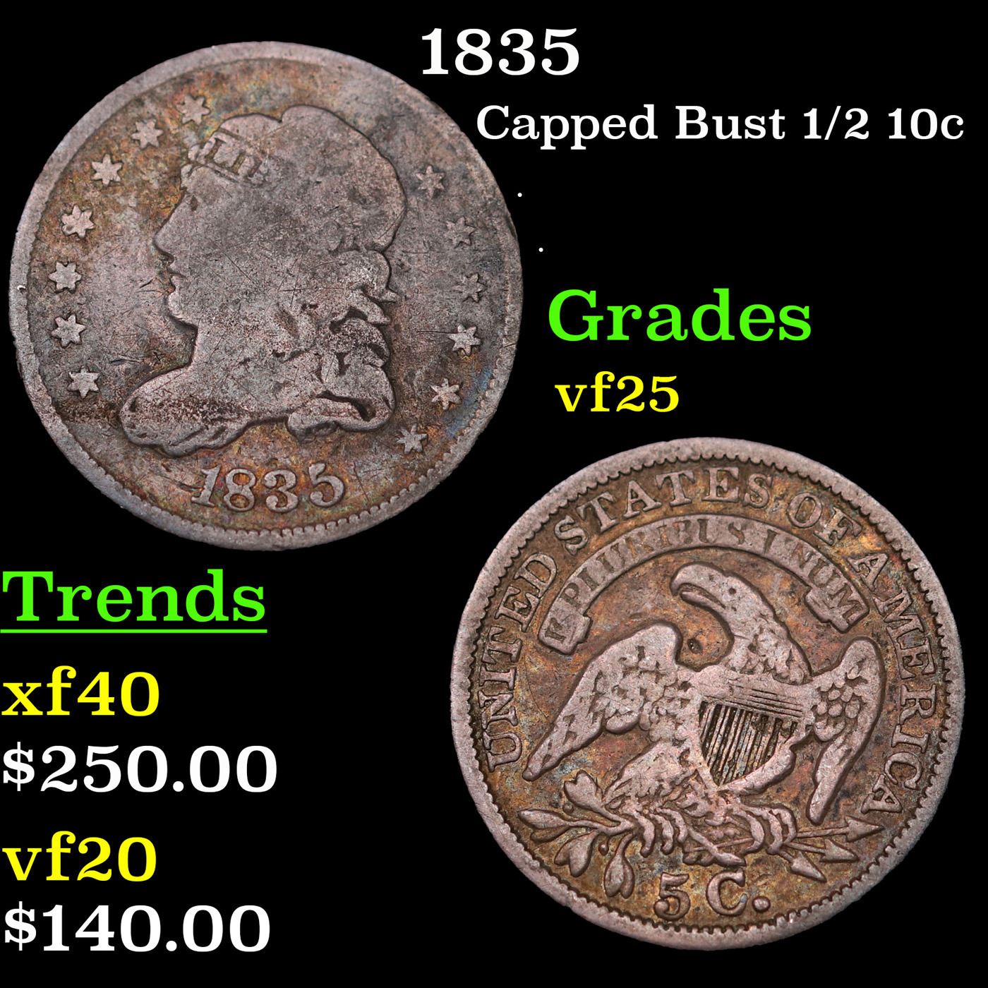 1835 Capped Bust Half Dime 1/2 10c Grades vf+.