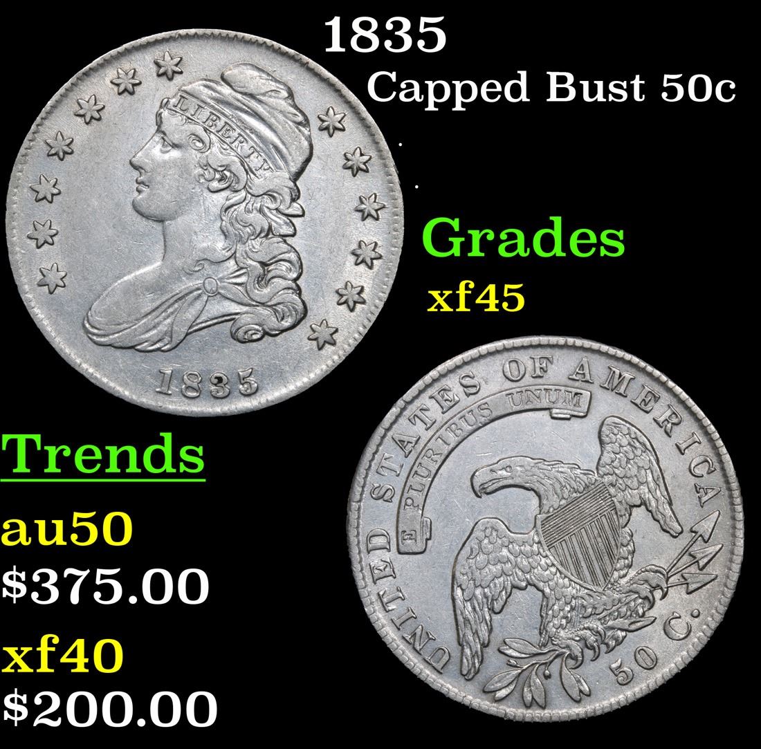 1835 . . Capped Bust Half Dollar 50c Grades xf+.