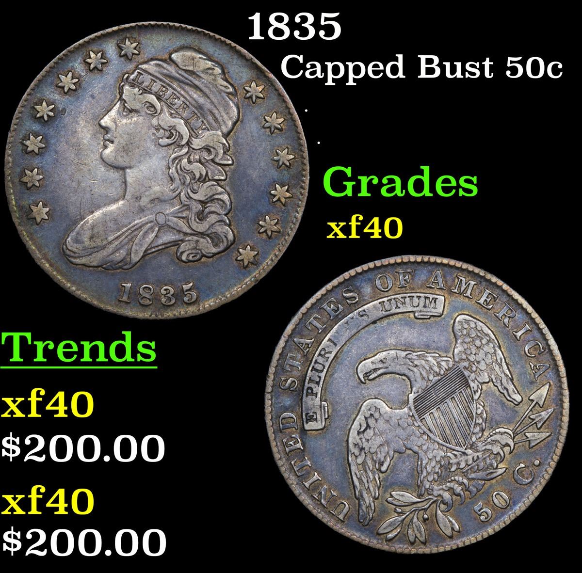 1835 Capped Bust Half Dollar 50c Grades xf.