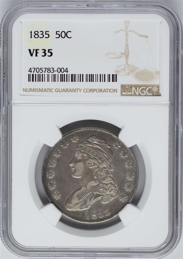 One 1835 Capped Bust Half Dollar Coin NGC VF35. NGC Certified.