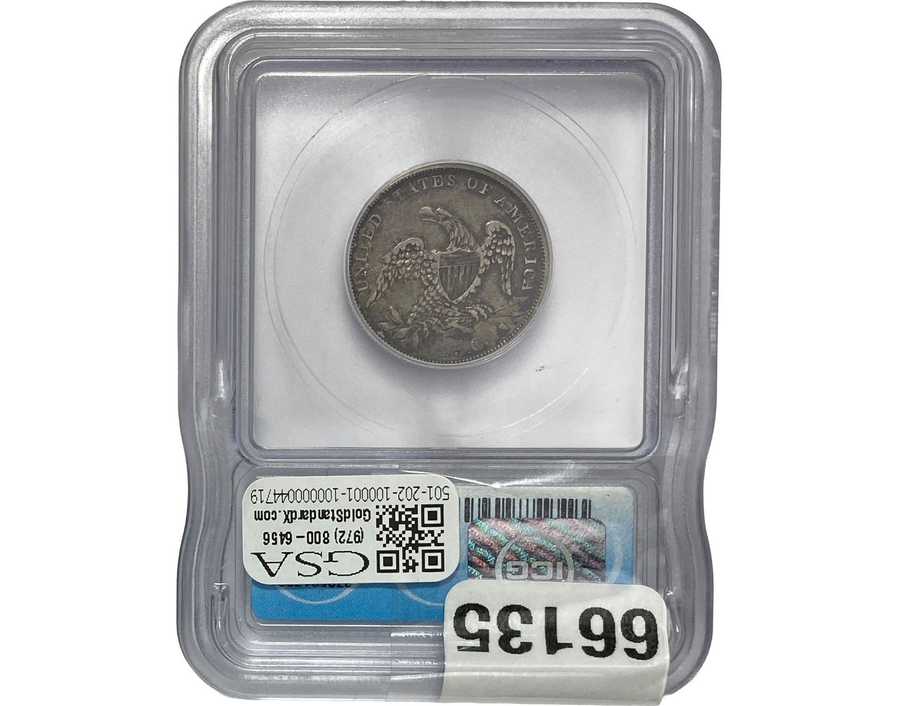 l. All non-certified coins and currency are guaranteed genuine, but are not guaranteed as to grade, since grading is a matter of opinion, an art and not a science, and therefore the description rendered by GSA or any third-party grading service may not agree with the opinion of others (including trained experts), and the same expert may not grade the same item with the same grade at two different times. GSA may, but is not obligated to, express an opinion as to non-certified numismatic items, in GSA’s opinion, or by its employees’ experience and the current interpretation of the American Numismatic Association’s standards as of the date the catalog was prepared. There is no guarantee or warranty expressed or implied that the grading opinions utilized by GSA, if any, will meet the standards of any grading service at any time in the future.
